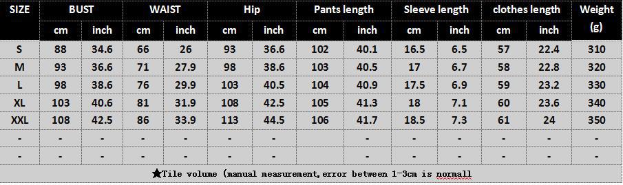 This stylish sports suit is available in a range of sizes from S to XXL, ensuring a perfect fit for everyone. Whether you prefer a snug or more relaxed fit, you can choose the size that suits you best.